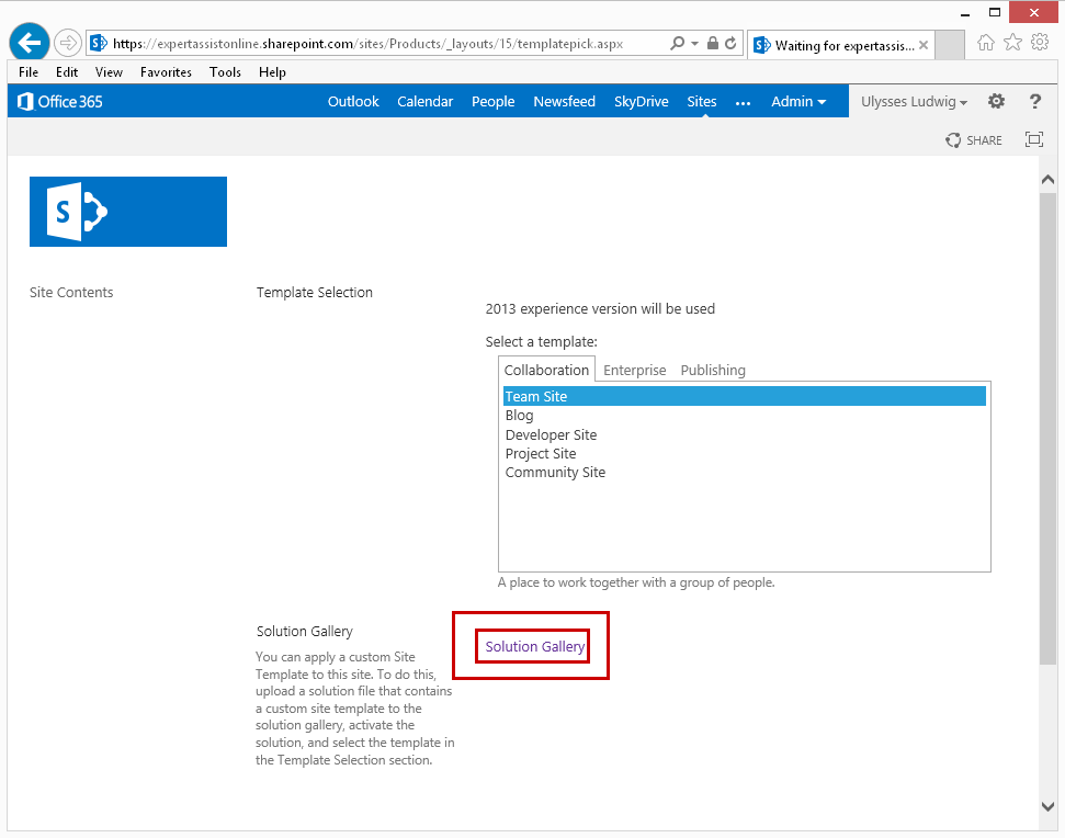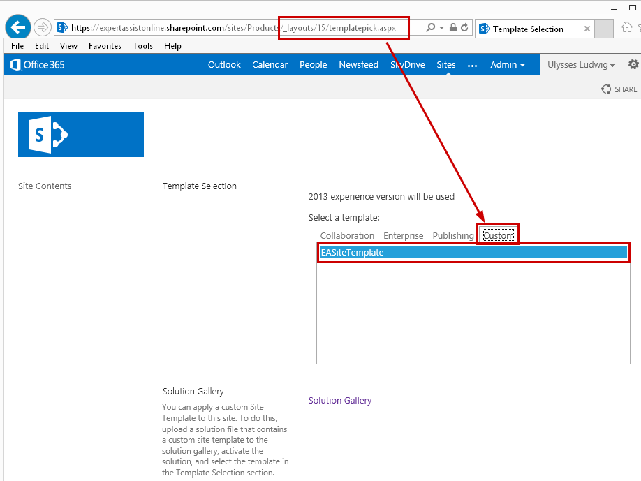 Return to /_layouts/15/templatepick.aspx