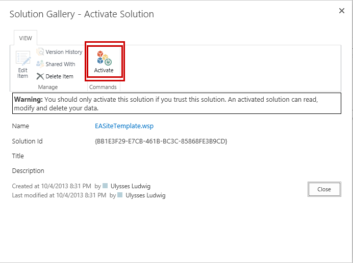 Activate the solution
